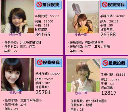 中國臺灣網(wǎng)9月27日消息 據(jù)臺灣媒體報(bào)道,島內(nèi)社交網(wǎng)站地圖日記舉辦“超人氣美女老師”網(wǎng)絡(luò)票選活動,三周吸引超過50名教師上網(wǎng)報(bào)名,逾20萬人次點(diǎn)閱。至昨天為止,27歲的舞蹈教師李依文暫居第一,有網(wǎng)友留言,有如此吸引力的老師,應(yīng)沒有學(xué)生上課會打瞌睡。