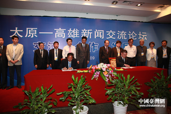 四、促進(jìn)交流合作常態(tài)化。從建立兩市新聞界長期穩(wěn)定的交流合作平臺出發(fā),雙方共同議定,“太原—高雄(高雄—太原)新聞?wù)搲泵磕昱e辦一次,舉辦地在太原、高雄交替進(jìn)行,每屆論壇主題由雙方共同商定。時機(jī)條件成熟以后,各類媒體經(jīng)友好協(xié)商可設(shè)立聯(lián)合記者站,或建立長期合作平臺。