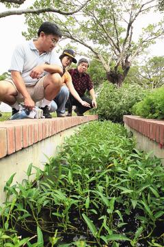 臺北花博第二階段測試首日,民眾好奇地觀看引發(fā)爭議的空心菜 圖片來源:臺灣《聯(lián)合報》