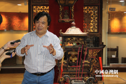 客家民俗博物館館長陶曉俊接受記者采訪(中國臺(tái)灣網(wǎng) 陳寧 攝)