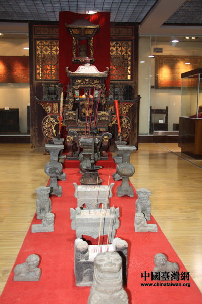 客家民俗博物館內(nèi)展示的客家人祭祖的場景(中國臺(tái)灣網(wǎng) 陳寧 攝)