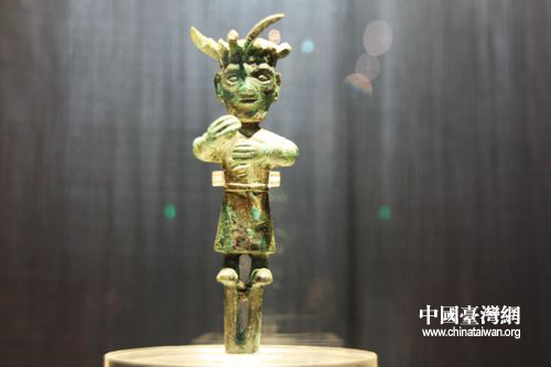 19.6厘米高的金沙青銅小立人,古樸精致。與三星堆出土的2米高青銅大立人有異曲同工之妙。(中國臺灣網(wǎng) 馬迪 攝)