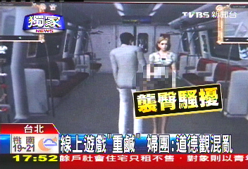 中國(guó)臺(tái)灣網(wǎng)11月1日消息 據(jù)臺(tái)灣TVBS電視臺(tái)報(bào)道,臺(tái)灣最近出現(xiàn)一款內(nèi)容極為“重口味”的在線游戲,玩家若要增加經(jīng)驗(yàn)值,須對(duì)游戲中的女性做出襲胸、襲臀、強(qiáng)吻等動(dòng)作。臺(tái)灣婦女團(tuán)體近日抨擊該款游戲,認(rèn)為它將導(dǎo)致青少年的“道德觀混亂”。