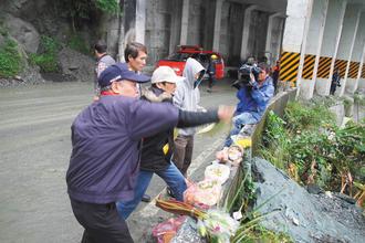 蘇花公路大塌方救援,原訂昨天上午由臺海軍水下作業(yè)大隊繼續(xù)到蘇花公路114.5公里處海邊打撈,也將出動拖船,運送大型挖土機到114.5公里海邊附近搜尋。但天氣不佳,山區(qū)持續(xù)大雨,搜救人員從早上等到下午,直升機和船都不能出航,只好在下午2時收隊,暫停搜救。