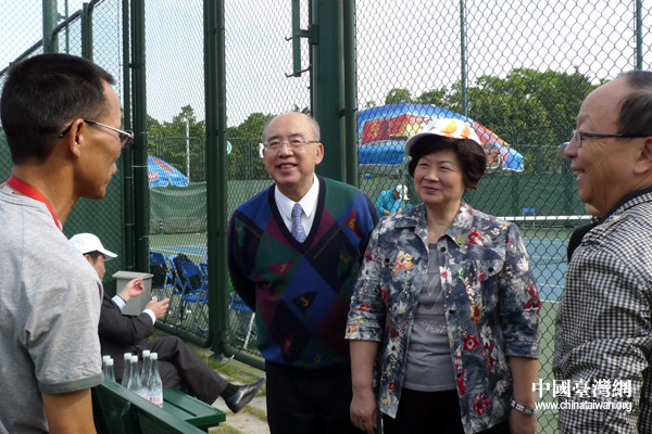 吳伯雄、蔣孝嚴與隊員張凱貞的父親張金萊交談(中國臺灣網(wǎng) 李徽 攝)