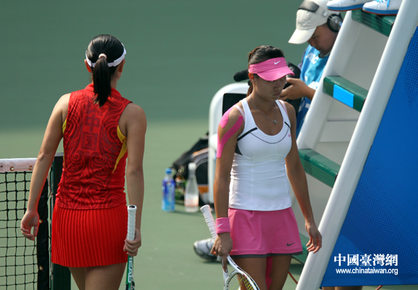 中國臺灣網(wǎng)11月16日廣州消息 第十六屆廣州亞運會女子網(wǎng)球團體賽決賽正在進(jìn)行,中國隊同中華臺北隊展開金牌爭奪戰(zhàn),中國隊選手彭帥對陣中華臺北隊選手張凱貞,奉獻(xiàn)第一場單打。(記者 鐘寶華)