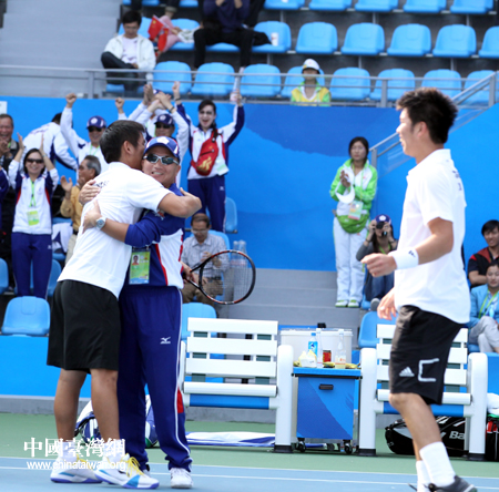中國(guó)臺(tái)灣網(wǎng)11月16日廣州消息 網(wǎng)球男子團(tuán)體決出冠軍,頭號(hào)種子中華臺(tái)北力敵3號(hào)種子烏茲別克斯坦,在決定勝負(fù)的第三場(chǎng)雙打中,以2:0完勝。這也是中華臺(tái)北隊(duì)在亞運(yùn)會(huì)網(wǎng)球男子團(tuán)體賽上第一次打進(jìn)決賽并贏得金牌。