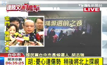 胡志強擔(dān)心連勝文安危,徹夜難眠。 來源:臺灣TVBS電視臺