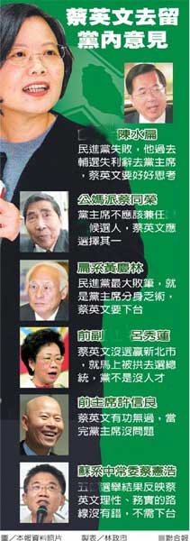 中國臺灣網11月30日消息 據(jù)臺灣《聯(lián)合報》報道,臺灣五市選舉大戰(zhàn)剛剛落幕,綠營內戰(zhàn)就開打。前臺灣地區(qū)領導人陳水扁昨天透過轉述表示,這次選舉民進黨只保有高雄、臺南兩市,是失敗的,他過去輔選“立委”失利后就辭去民進黨主席,蔡英文自己應該好好思考。