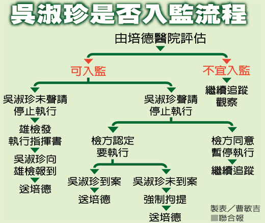 評估吳淑珍是否入監(jiān)服刑流程。 來源:臺灣《聯(lián)合報》