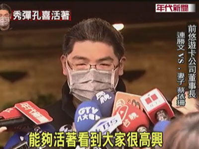 據(jù)報道,連勝文終于公開露面,今日上午10時13分他在妻子蔡依珊的陪同下步出住處,僅說了一句話:“謝謝大家關心,能夠活著看到大家,很高興,謝謝大家!彪S后便搭上座車,前往臺大醫(yī)院,未再多發(fā)表談話。