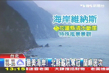 東海岸的美麗風(fēng)景當(dāng)然不缺席,花蓮的清水?dāng)嘌,壯麗的海洋景觀讓人嘆為觀止;宜蘭的龜山島盡管開放觀光,讓游客登島,但依舊注重島上的生態(tài)保育,兼顧休閑又保有自然生態(tài)景觀。圖片來源:臺灣TVBS電視臺