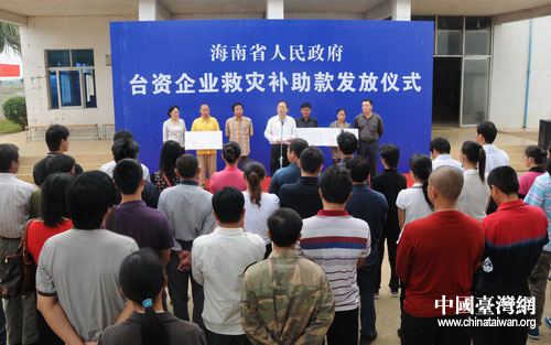 海南省臺(tái)辦副主任劉耿在發(fā)放儀式上說(shuō),天災(zāi)無(wú)情,同胞有愛(ài)。今年10月,海南發(fā)生特大持續(xù)強(qiáng)降雨災(zāi)情后,各級(jí)黨和政府對(duì)臺(tái)資企業(yè)的災(zāi)情廣泛關(guān)注。海南省委省政府通過(guò)省臺(tái)辦迅速部署開(kāi)展了抗災(zāi)救援工作。這次發(fā)放臺(tái)資企業(yè)救災(zāi)補(bǔ)助款,雖然資金有限,但體現(xiàn)了省委省政府對(duì)臺(tái)資企業(yè)的關(guān)懷,體現(xiàn)了兩島同胞血濃于水、血脈相連的手足之情。