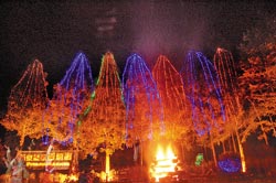 閃亮巨傘 惠蓀林場(chǎng)以萬(wàn)顆LED燈點(diǎn)亮臺(tái)灣杉,象征點(diǎn)亮臺(tái)灣希望,邀請(qǐng)各界參與點(diǎn)亮希望之樹(shù)活動(dòng)。圖片來(lái)源:臺(tái)灣《中國(guó)時(shí)報(bào)》
