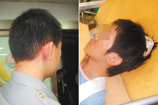 李姓交警(左)與陳姓協(xié)警(右)被打傷。圖片來源:臺灣《聯(lián)合報(bào)》