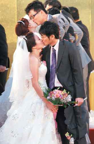 中國臺灣網(wǎng)1月2日消息 綜合臺灣媒體報(bào)道,2011年元旦全臺涌現(xiàn)“結(jié)婚潮”,不僅結(jié)婚人數(shù)創(chuàng)歷史最高紀(jì)錄,婚禮形式也極具創(chuàng)意,引發(fā)島內(nèi)民眾和媒體的強(qiáng)烈關(guān)注。