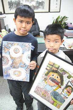 考量、考究兄弟,一個(gè)五年級(jí),一個(gè)三年級(jí),都有藝術(shù)天分,才學(xué)版畫半年,雙雙拿下新竹市美術(shù)比賽第一。被推薦參加全臺(tái)灣學(xué)生美展,考究獲中年級(jí)組第一,考量入選佳作。