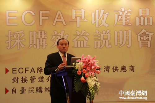 說明會邀請了商務部臺港澳司副司長康文、臺北世貿(mào)研究總監(jiān)巫英臣、北京農(nóng)產(chǎn)品流通協(xié)會秘書長王兢分別針對“ECFA降稅商機說明及臺灣供貨商對接管道介紹”、“ECFA優(yōu)惠政策及早收清單效益”、“自臺采購經(jīng)驗分享”等進行宣講及說明。