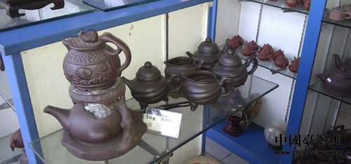 販賣部的藝品區(qū),茶壺、玉器等品種多樣。