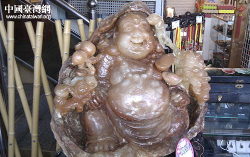 黃玉彌勒佛,主招財(cái)。老板說,這是他們賣得最好的藝品之一。