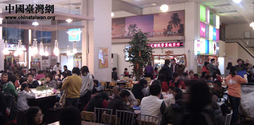 高速公路休息站內(nèi)的餐廳,春節(jié)假期人潮爆滿。
