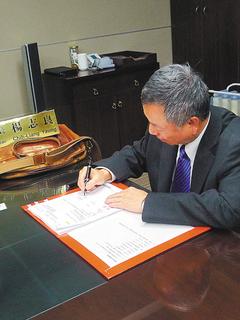 臺(tái)當(dāng)局前“衛(wèi)生署署長(zhǎng)”楊志良卸職前一天傍晚,簽署他任內(nèi)最后一紙公文。圖片來(lái)源:臺(tái)灣《聯(lián)合報(bào)》
