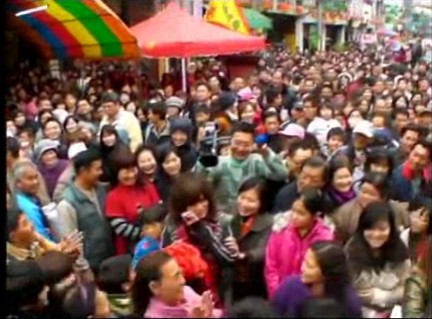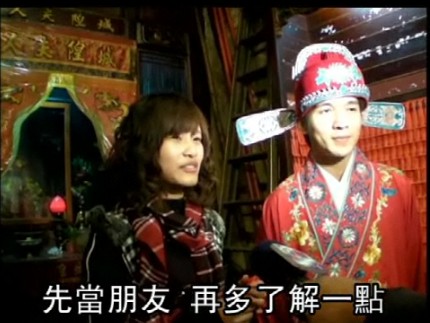 帥哥潘冠志只好再拋第二次,結果接到繡球的女主角是17歲、就讀高二的女生葉愉萍。葉愉萍說:“剛剛拜完城隍爺走出廟門,在路過舞臺前時就接到一顆紅色大繡球,是發(fā)生什么事?”等到她被半推半就請上臺后才知道是在舉辦“拋繡球”活動,直說真的好像是接到“天上掉下來的禮物”。