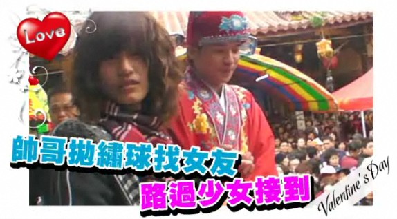 中國臺灣網(wǎng)2月14日消息 據(jù)臺灣媒體報道,彰化縣鹿港城隍廟昨天舉辦一場別開生面“男丁拋繡球找女情人”活動。男主角潘冠志拋出的繡球,被臺下一名17歲高二女生葉愉萍接到。葉愉萍上臺后,面對主持人藝人蔡閏詢問后說:“愿意交往試看看!”,立即獲得臺下民眾熱烈的掌聲和祝福。