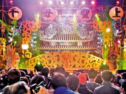 北港朝天宮元宵晚會(huì)登場(chǎng),今年特別與福建湄洲媽祖廟合作,兩岸一起歡慶元宵節(jié)。圖片來(lái)源:臺(tái)灣《中國(guó)時(shí)報(bào)》