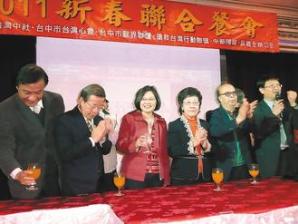 民進黨政治大佬同臺喝春酒,較勁意味十足。圖片來源:臺灣《聯(lián)合報》