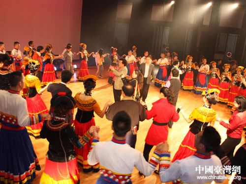苗栗縣演出結(jié)束臺灣民眾與演員們共同跳起歡快的達(dá)體舞。圖片來源:四川省臺辦