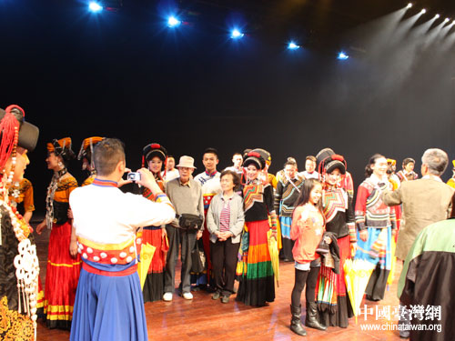 在彰化縣演出結(jié)束后,觀眾踴躍與演員合影留念。圖片來(lái)源:四川省臺(tái)辦