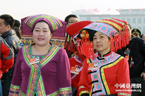 3月5日,十一屆全國人大四次會議在北京人民大會堂開幕。身穿民族服飾的大代表走入會場,成為兩會一道亮麗的風景。(中國臺灣網(wǎng) 王偉 攝)