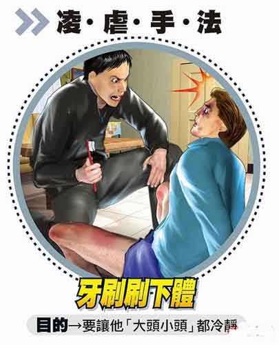 報道稱,楊為“回應(yīng)”好友讓他戴綠帽,囚禁期間,以牙刷沾牙膏刷洪男下體,要他“大頭小頭都冷靜”;并用酒瓶套在洪男手指上硬折,以熱溶膠燙手臂等方式,要讓洪男“記憶深刻”;并連續(xù)3天播放佛經(jīng)要洪“自省改過”。