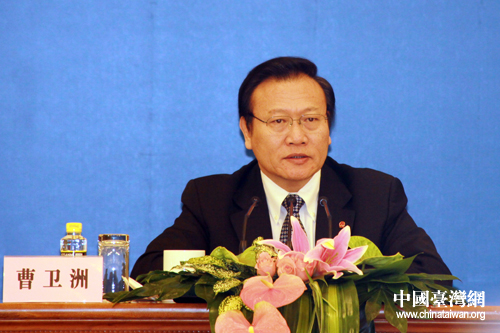 全國(guó)人大常委會(huì)副秘書長(zhǎng)曹衛(wèi)洲主持記者會(huì)。(中國(guó)臺(tái)灣網(wǎng) 王偉 攝)