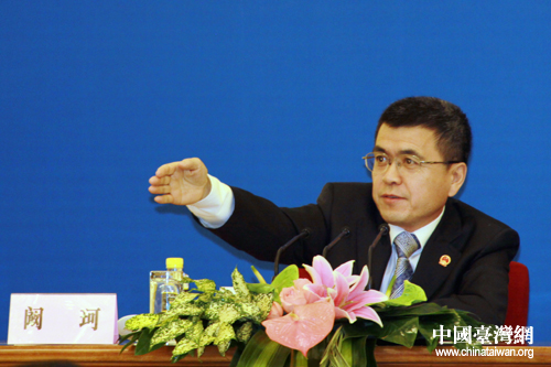 全國(guó)人大常委會(huì)辦公廳新聞局局長(zhǎng)闞珂參加記者會(huì)。(中國(guó)臺(tái)灣網(wǎng) 王偉 攝)