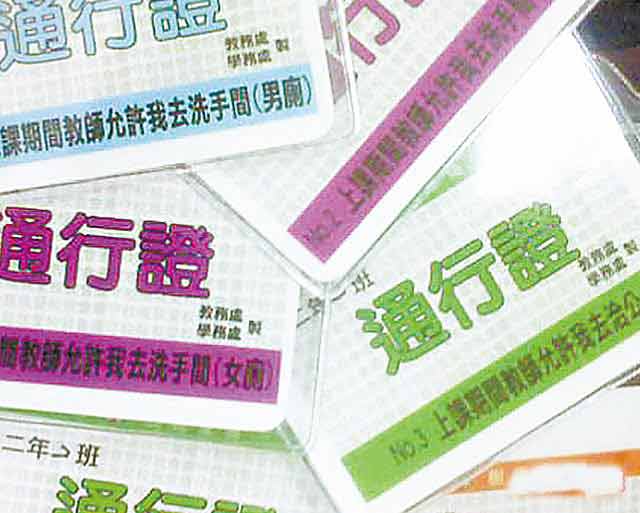 據(jù)報道,樹德家商校方本周起要求學(xué)生上課時間外出,須經(jīng)授課老師同意,胸前掛牌外出,通行證上標(biāo)示“上課期間教師允許我去洗手間”、“上課期間教師允許我去洽公”等,男女顏色也不相同。