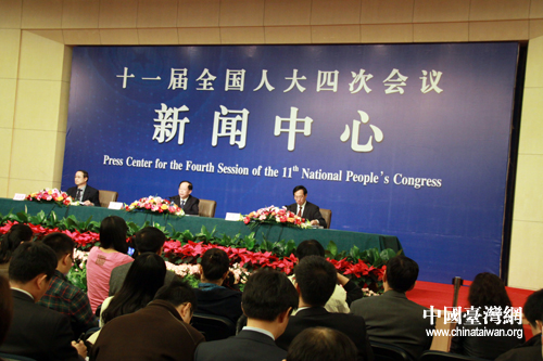 十一屆全國(guó)人大四次會(huì)議新聞中心12日在梅地亞中心多功能廳舉行記者會(huì),臺(tái)灣《旺報(bào)》記者提問。(中國(guó)臺(tái)灣網(wǎng) 王偉 攝)