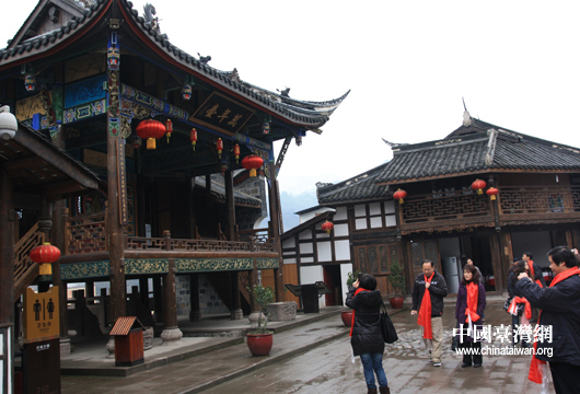始建于1588年的戲臺(tái)是古鎮(zhèn)的重要建筑,地震中被夷為平地,如今仿古重建了新的戲樓,晚上小伙子們又可以在這里跳起鍋莊舞。 (中國(guó)臺(tái)灣網(wǎng) 蕪?fù)?攝)