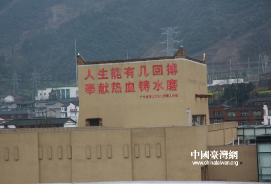 水磨鎮(zhèn)是由廣東佛山市對口支援重建的,這是援建者留下的誓言。(中國臺灣網(wǎng) 蕪?fù)?攝)