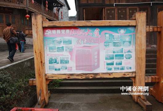 鎮(zhèn)上的宣傳版上公示了08年以來使用中國共產(chǎn)黨特殊黨費支持汶川重建的明細。(中國臺灣網(wǎng) 蕪同 攝)