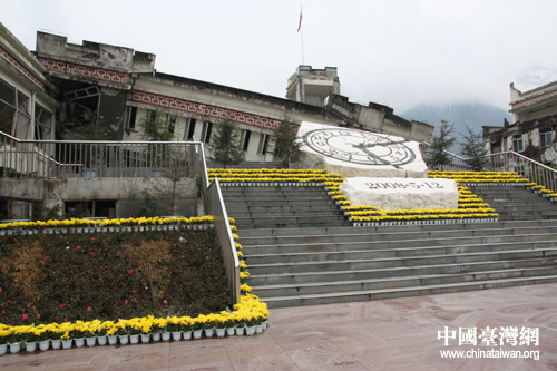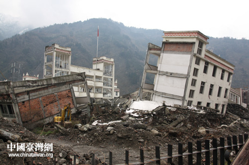 三年前的浩劫仍然讓人觸目驚心,至今那廢墟下仍埋著漩口中學的師生(中國臺灣網(wǎng) 蕪同 攝)