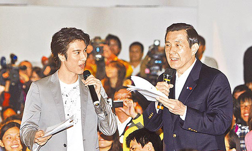 馬英九(右)與偶像歌手王力宏(左)在臺灣清華大學(xué)對談夢想造就軟實(shí)力。圖片來自網(wǎng)絡(luò)