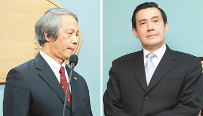賴浩敏(左)向“大法官”審薦小組推薦邵燕玲,自認思慮不周,1日向馬英九、蕭萬長及島內(nèi)民眾致歉。馬英九(右)親自出面道歉,神情凝重。 來源:臺灣《聯(lián)合報》