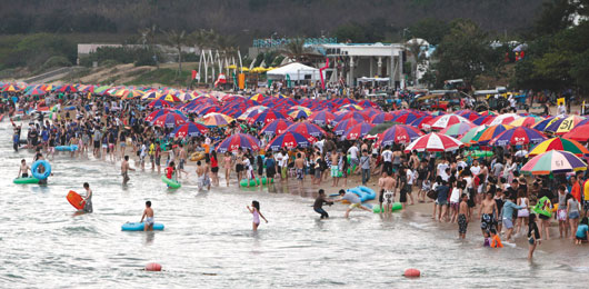 報(bào)道指出,一年一度為期4天的墾丁春天音樂(lè)季昨天邁入最高潮,10萬(wàn)人涌入墾丁,到處是車(chē)潮人潮,車(chē)陣從墾丁大街一路回堵數(shù)公里遠(yuǎn),知名的南灣、墾丁大街上盡是穿著清涼的比基尼辣妹,白天在海灘戲水,入夜則隨著搖滾、重金屬音樂(lè)扭臀款擺,狂歡的氣氛從早上延續(xù)到深夜,帥哥靚女都想在墾丁為自己留住青春美好回憶。(中國(guó)臺(tái)灣網(wǎng) 劉海偉)