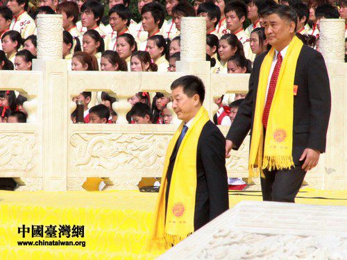 9點55分,大典在中華全國臺灣同胞聯(lián)誼會會長梁國揚的主持下正式開始。包括國臺辦副主任葉克冬在內(nèi)的各級領(lǐng)導人和嘉賓先后敬獻花籃,鞠躬致敬。親民黨副主席張昭雄等嘉賓陸續(xù)凈手上香。十屆全國人大常委會副委員長、中華炎黃文化研究會會長許嘉璐恭讀《拜祖文》。