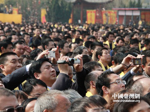 拜祖大典進(jìn)行時(shí)。參會者競相拍攝,留住珍貴一刻。(中國臺灣網(wǎng) 馬迪 攝)