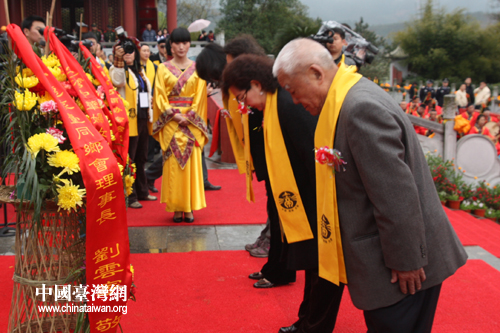 辛卯年清明海峽兩岸祭祀炎帝神農(nóng)氏大典4月3日在湖南炎陵縣炎帝陵舉行,190余名參加第二屆在臺湘籍后裔湖南行的在臺湘籍人士參加了祭祀典禮。(中國臺灣網(wǎng) 楊麗 攝)