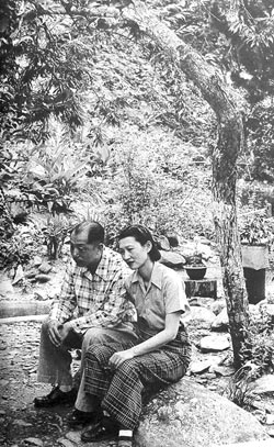 張學(xué)良與趙一荻在五峰清泉庭園中合影。圖片來(lái)源:臺(tái)灣《中國(guó)時(shí)報(bào)》