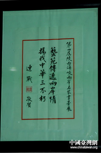 中國國民黨榮譽主席連戰(zhàn)題詞。(陜西臺辦張群莉 攝)